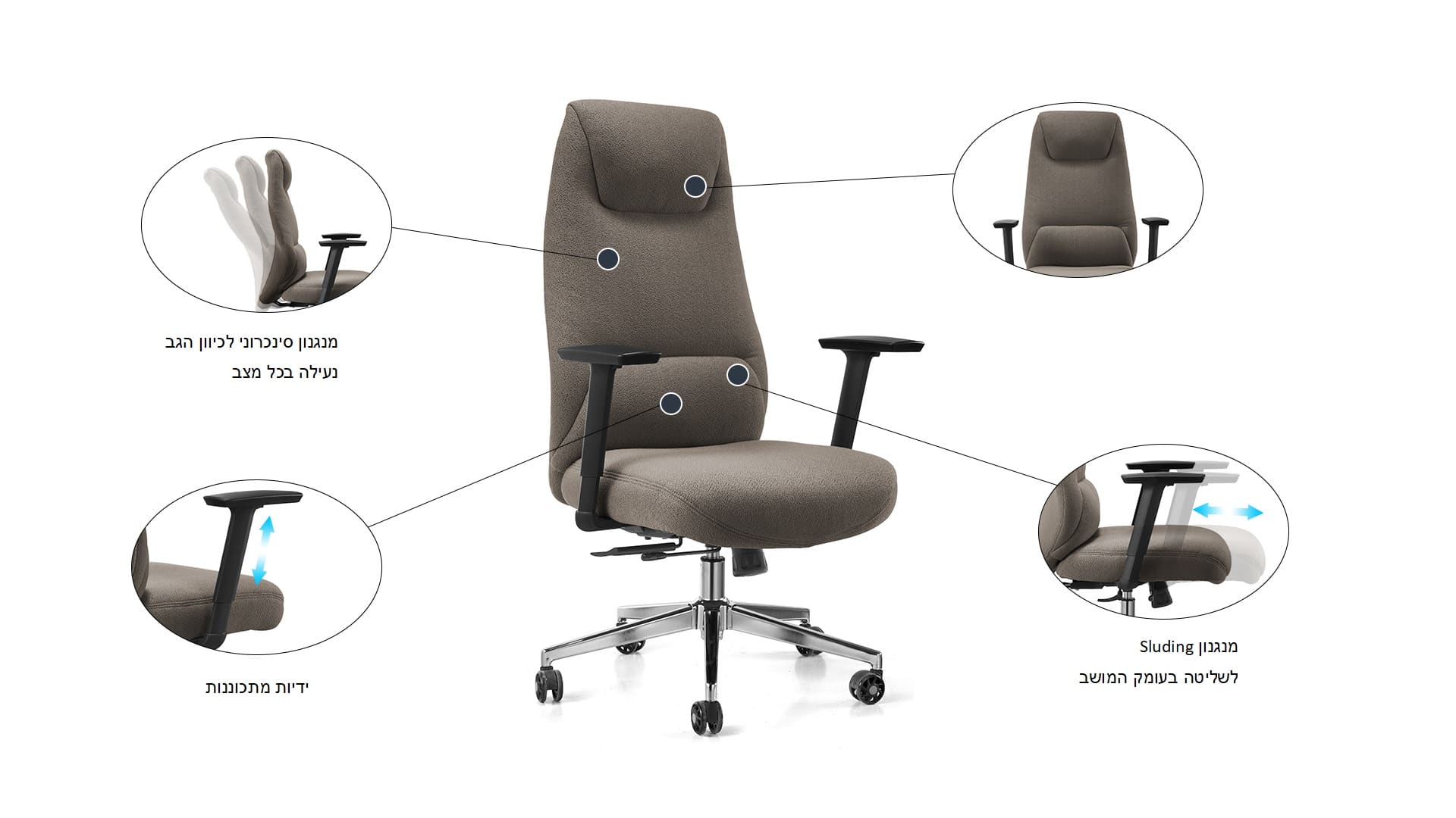 חדש !!! כיסא מנהלים בד ברוס אפור